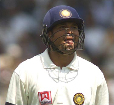 ![]() Gone in three daysA ball from Mark Waugh, produced another of those fortuitous dismissals that have been Tendulkar's bane. Sachin pulled, with enormous power. Langer, at short square leg, turned his back and ducked. The ball thumped into him, high on his back, and bounced. Ricky Ponting, alert as always at shortish mid on, raced around to midwicket, then dived headlong, and produced a catch of incredible brilliance to end Tendulkar's innings. |