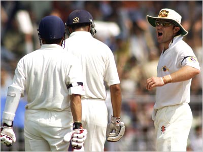 ![]() Gone in three daysIn the morning session, Dravid pulled a short ball from Fleming and Slater, at midwicket, dived headlong to come up with the ball and appeal.The third umpire, with benefit of action replay, ruled Dravid in -- again, the right decision. Slater stormed up to Dravid and heatedly told him to walk, arguing that his catch was fair. |