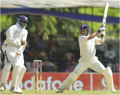 Craig White pulls four runs during the third day of the 2nd Test between Sri Lanka and England at the Asgiriya Cricket Ground, Kandy, Sri Lanka.