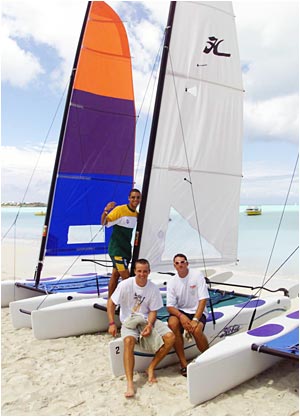 Boeta Dippenaar, Andre Nel and Justin Ontong (behind) relax on the beach.