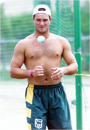 Mark Boucher beats the heat at a practice session.