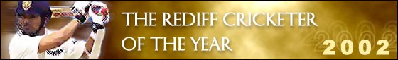 It's time to look back on 2002 and evaluate the players who made a difference to their team's fortunes. India won two overseas Tests after 16 long years, one each in the West Indies and England, though an overseas series win continued to remain elusive. Rahul Dravid graduated from being a good player to marking himself for greatness. Sachin Tendulkar ended the year as the highest run-getter in Tests though young guns Virender Sehwag, Yuvraj Singh, and Mohammad Kaif overshadowed his performance in the abridged version of the game. Zaheer Khan ended the year as the top wicket-taking paceman while Shaun Pollock took the honours in the one-day version with 54 wickets. Leg-spinner Shane Warne baffled batsmen to be the top-wicket taker in Tests while Ricky Ponting excelled in both versions of the game. Pakistan's Yousuf Youhana with five centuries topped the run-getters' list for one-dayers while Jacques Kallis established himself as the finest all-rounder of the year yet again in the absence of New Zealand's Chris Cairns. Which of these, in your view, qualifies for the title of Rediff Cricketer of the Year 2002? Do click on the radio button against your choice and scroll below to submit your vote.