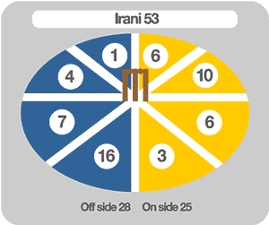 Our graph shows where Irani scored his runs, with his most profitable area between cover and long-off. That included one sweet, flat six off Yuvraj Singh. But apart from that shot, Irani was more comfortable against seam than spin. He hustled 18 off 13 balls off the seamers (equivalent to 8.3 per over), as compared to 35 off 42 balls (or exactly 5 an over) when facing the spinners. Then came Irani's turn with the ball. He took 5 for 26, the best figures by an Englishman in an ODI in England. And in his 16th appearance, Irani doubled his wickets tally. All in all, it was a very good day at the office.