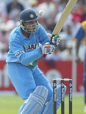 Indian captain Sourav Ganguly was hit by a short ball from Nuwan Zoysa early in the innings.