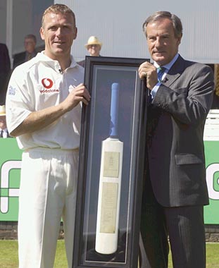 England wicketkeeper Alec Stewart was presented a commemorative bat by ECB chairman Lord MacLaurin to mark a record 119th appearance for his country, before the start of the first Test beteween England and India at Lord's on Thursday.