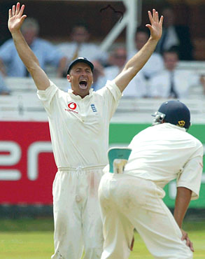 Hussain appeals unsuccessfully for the wicket of Ashish Nehra.