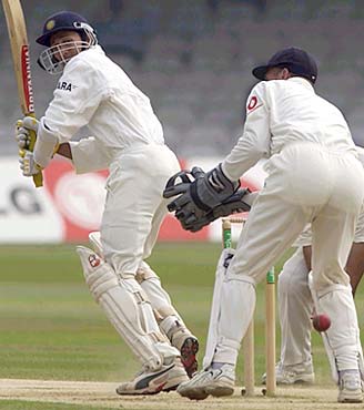 Agarkar plays the ball off his toes. The No. 8 batsman went on to make an unbeaten 109.