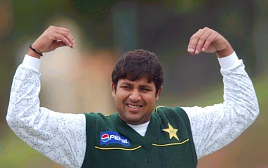 Inzamam ul-Haq of the Pakistan cricket team warms up before training at the Allan Border Field in Brisbane, Australia. The Pakistan team are in Brisbane to train in preparation for the Tower Super Challenge one day cricket series against Australia.