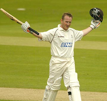 Alistair Brown of Surrey celebrates his record-breaking score of 268 during the Cheltenham and Gloucester Trophy one-day match against Glamorgan at The Oval, London.