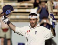 Thorpe and Andy Flintoff (137) shared an England record sixth wicket stand against all countries of 281 as the visitors took total command. The previous best of 240 was scored by Peter Parfitt (131 not out) and Barry Knight (125) against New Zealand at Auckland in 1963.