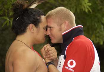 England players Matthew Hoggard and James Foster are given a traditional Maori welcome in Wellington, the venue for the second Test against New Zealand.