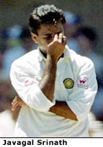 While leaving I noticed one of the shutters to the Indian dressing room was open. The Indians looked really downcast and Ganguly just sat alone with his head covered with a towel. It looked very disheartening. Srinath was finally trying to get some batting practice. I really wonder about his commitment to the team.