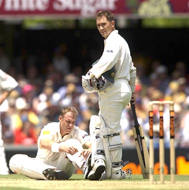 Justin Langer and Hayden gave Australia a good, steady start sharing a partnership before Langer departed.