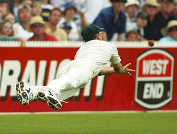 The lanky Australian pulled off one of the great outfield catches when he sprinted 20 metres to take a diving one-handed catch at deep backward-square.