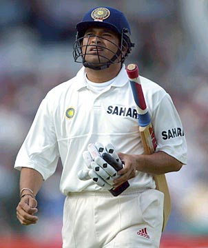 The little master stroked his way to an aggressive half-century before an inswinging yorker from Andrew Caddick trapped him LBW.