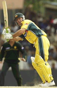 Australia had lost Adam Gilchrist in the first over of their reply, bowled by Wasim Akram for a three-ball duck, before Ponting, with 29 off 33 deliveries, and Matthew Hayden, with 20 off 22, took control.