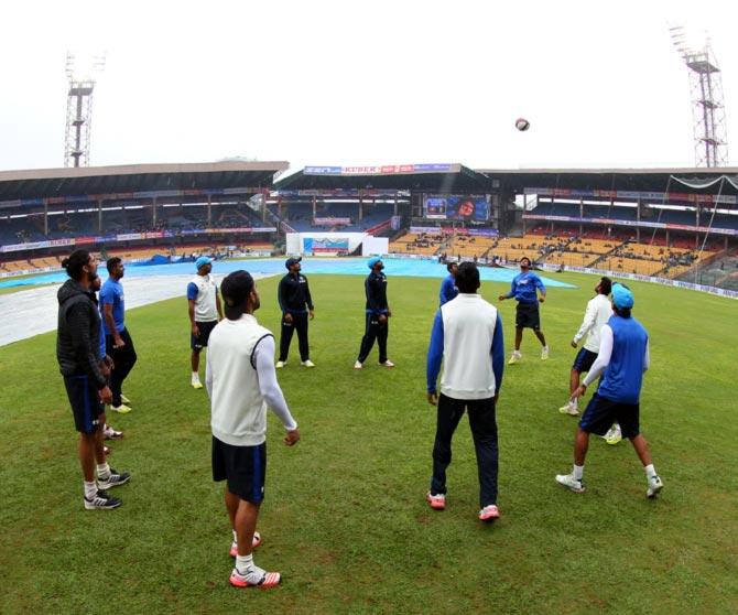 As the covers are being brought to the middle, the Indian cricketers are keeping themselves busy with game of football or as some call it -- 'keep ups'.