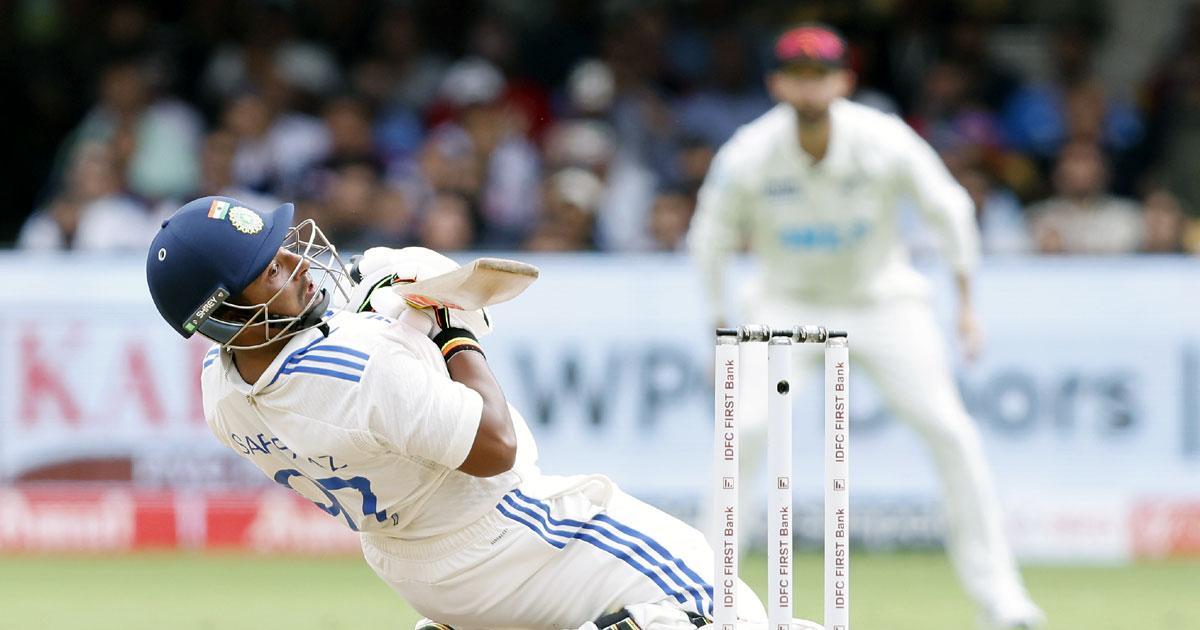 Left-arm spinner Ajaz Patel dismissed both the openers before Kohli and Sarfaraz added 136 runs for the third wicket.