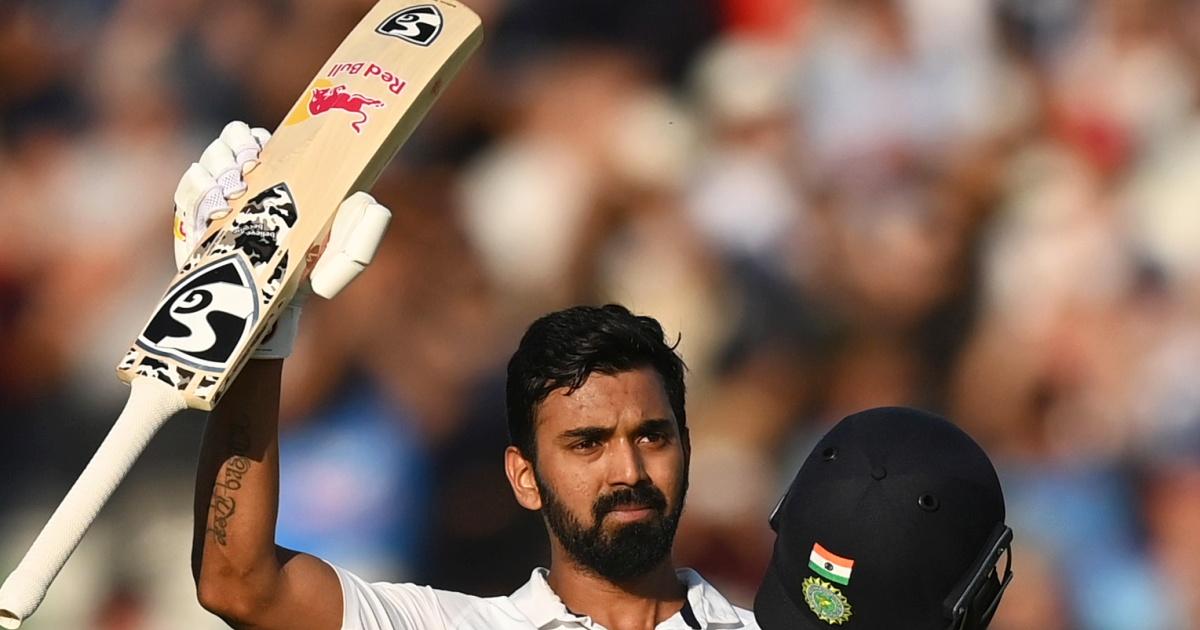 IMAGE: K L Rahul acknowlges the applause after scoring a century at Lord's on Day 1 of the second Test, August 12, 2021. Photograph: Gareth Copley/Getty Images