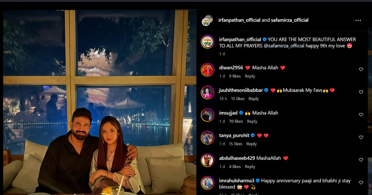 Irfan Pathan and wife Safa Baig celebrated their 9th wedding anniversary in presence of family and friends.