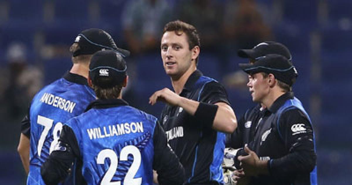 Image: Matt Henry of New Zealand celebrates with teammates after dismissing Ahmed Shehzad of Pakistan during the fourth ODI in Abu Dhabi.
