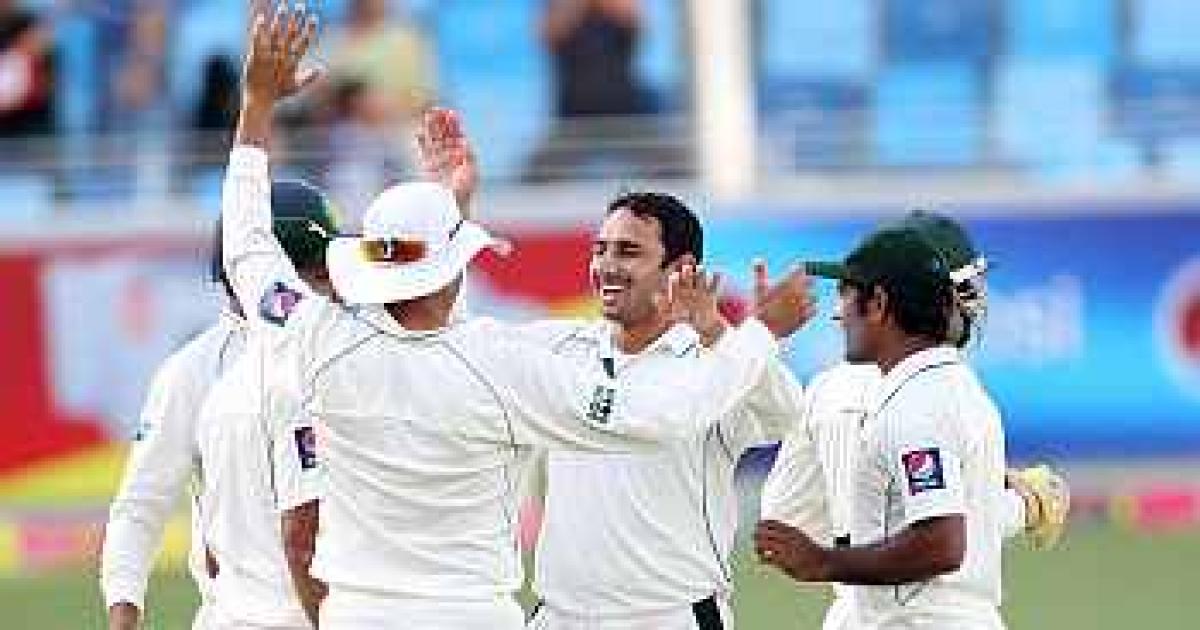Bowling: U. Gul 15-3-39-0, Junaid Khan 17-4-38-2, M. Hafeez 14-2-30-1, A. Rehman 33-7-65-2, S. Ajmal 30.5-9-68-5.