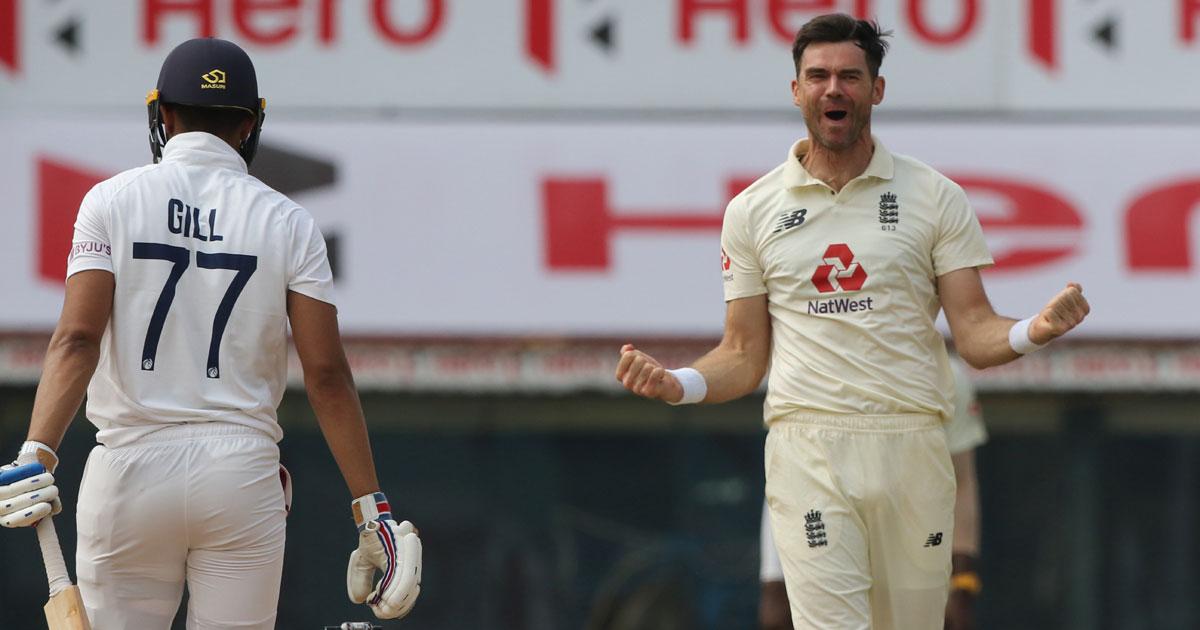 England pacer James Anderson celebrates the wicket of India opener Shubman Gill
