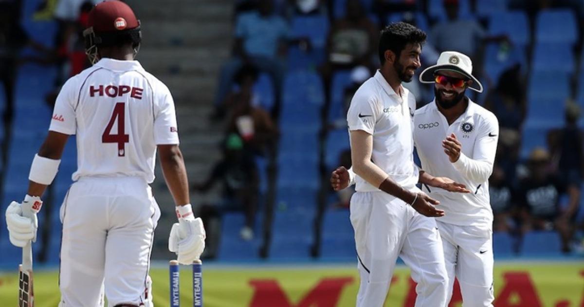 Fast bowler Jasprit Bumrah took five wickets for seven runs as India recorded their biggest ever away victory by runs, thrashing West Indies by 318 runs in the first Test in Antigua on Sunday.