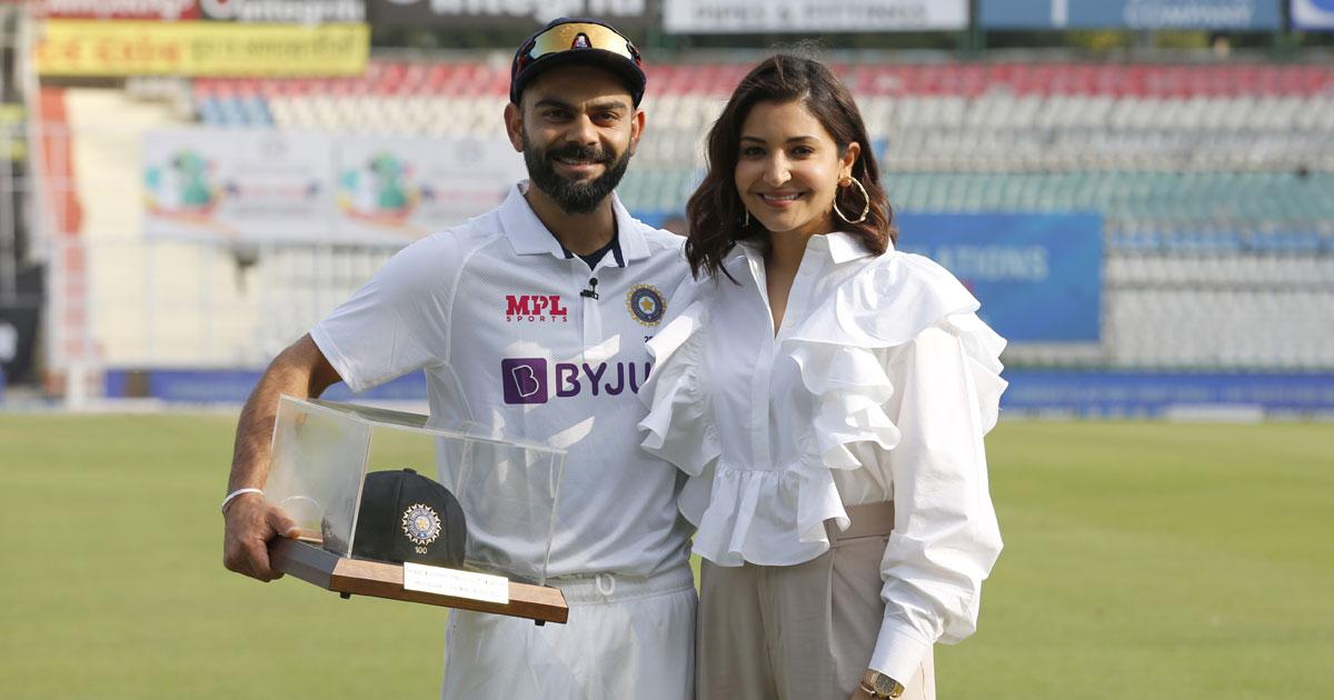 Virat Kohli was joined by wife Anushka Sharma as the star India batter was felicitated for reaching the milestone of 100 Test matches in Mohali on Friday.