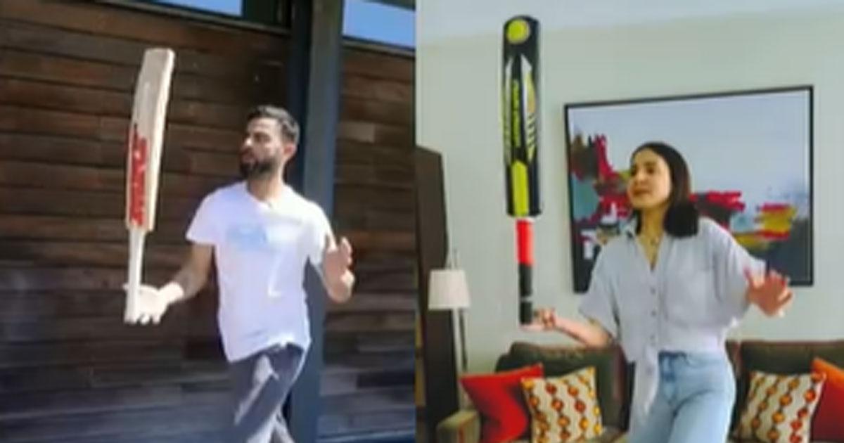 Anushka Sharma showed off her skills with the bat when she took on husband Virat Kohli in the Bat Balance Challenge.