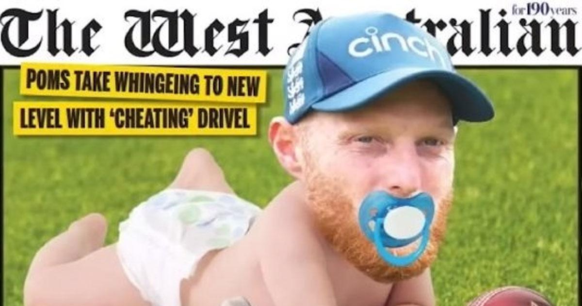 The West Australian's front page carried an edited image of Stokes' face on a baby wearing diaper with a dummy in the mouth with the headline 'CRYBABIES'.