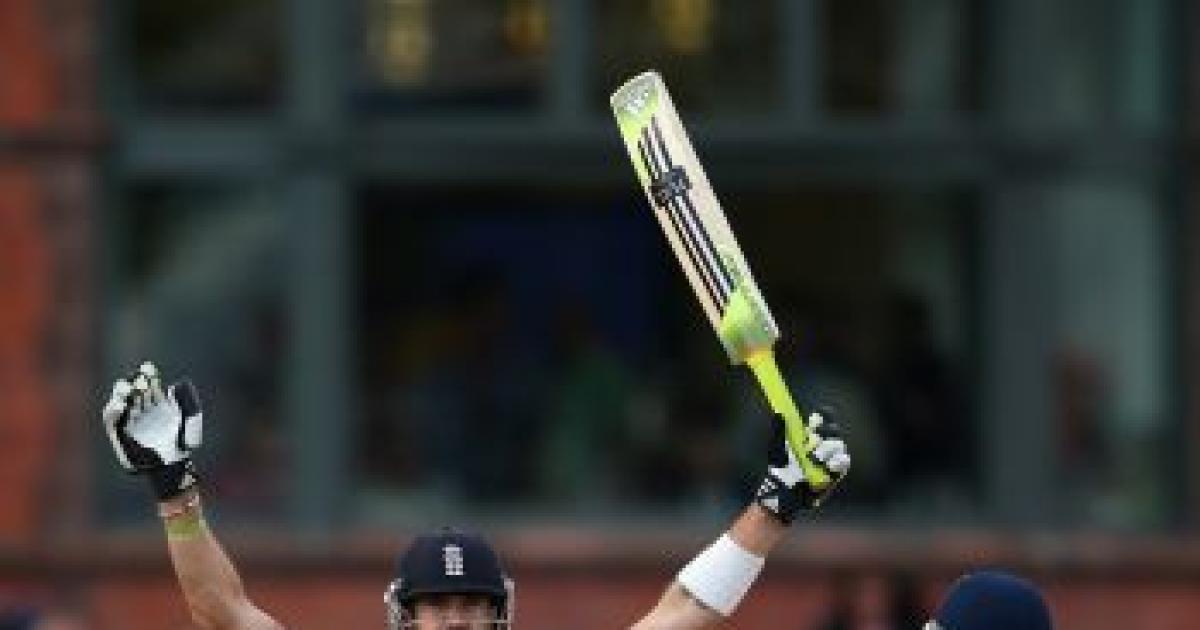 Image: Kevin Pietersen celebrates after reaching his century