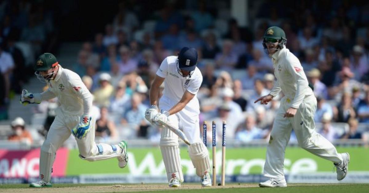 Jonny Bairstow, on 13, tamely pulled Mitchell Johnson to Lyon at square leg, Jos Buttler was bowled by Lyon for one and Ben Stokes skied Marsh to Nevill for 15.