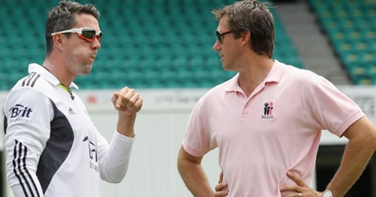 Image: Kevin Pietersen of England speaks with former Australian cricketer Glenn McGrath