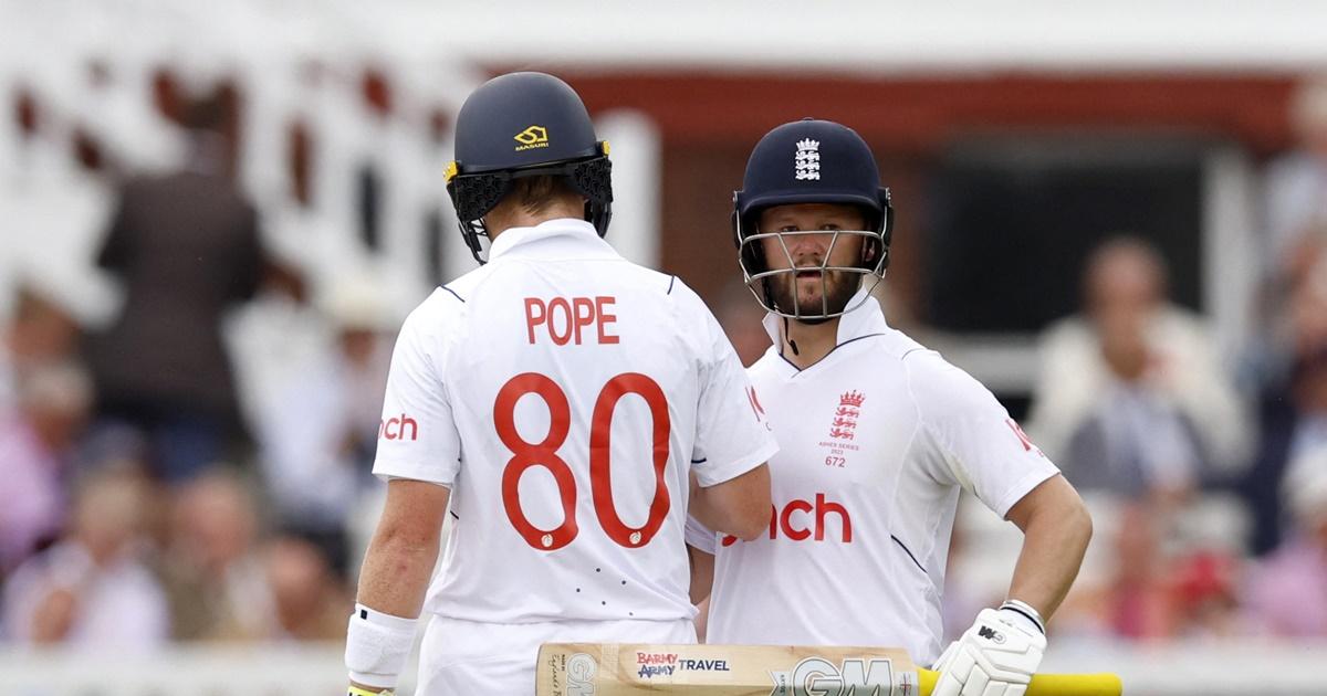 Ollie Pope came in and maintained the momentum as Australia's attack struggled for any sort of penetration. He was looking untroubled with spaces all over the outfield but could not resist a Cameron Green bouncer and hooked it straight down the throat of Smith, one of three men placed on the leg side boundary for exactly that gift, to depart for 42.