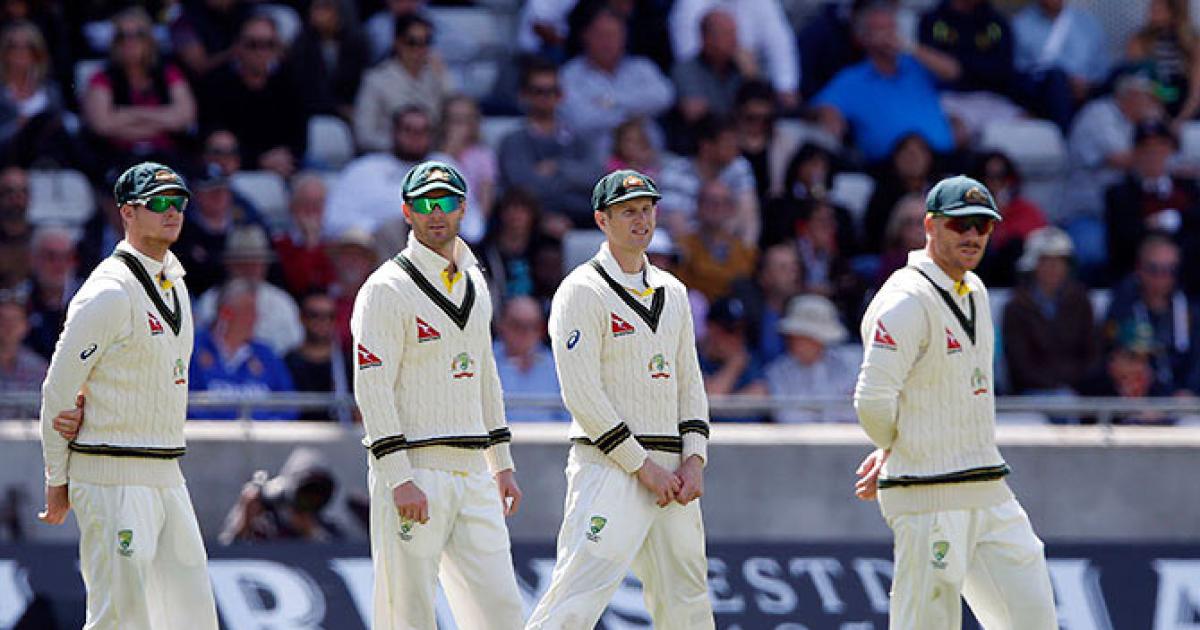 Australia's players in the slip cordon. Photograph: Carl Recine Livepic/Action Images via Reuters