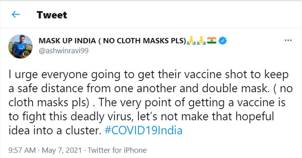 'I urge everyone going to get their vaccine shot to keep a safe distance from one another and double mask. (no cloth masks pls) . The very point of getting a vaccine is to fight this deadly virus, let's not make that hopeful idea into a cluster.' Ashwin tweeted.