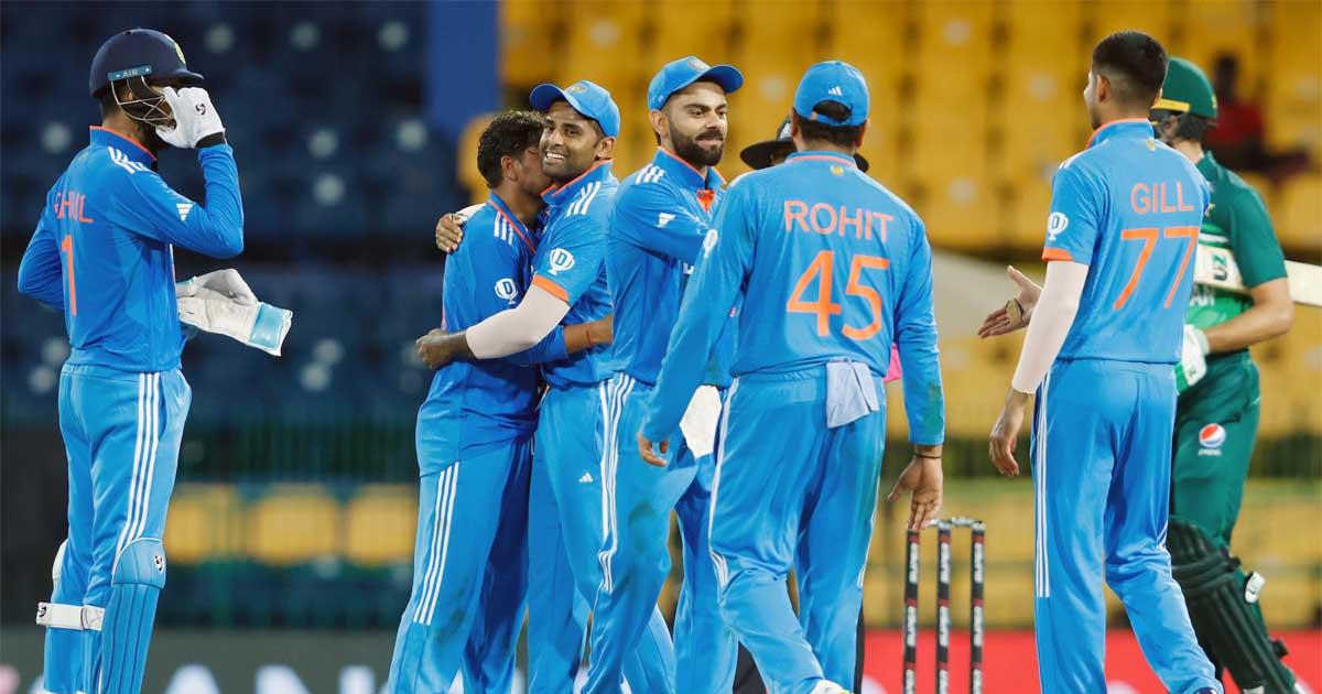 IMAGE: India's players celebrate winning the Super Fours gane against Pakistan in Colombo on Monday, September 11, 2023. Photographs: BCCI/X