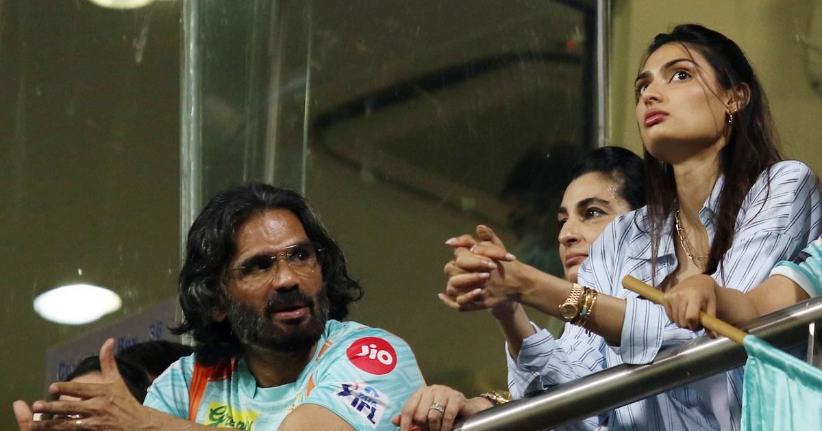 Lucknow Super Giants Skipper K L Rahul's actor girlfriend Athiya Shetty, her parents actor Suniel Shetty and Mana Shetty, other family members and friends were present at the Wankhede stadium on Sunday evening to cheer LSG.