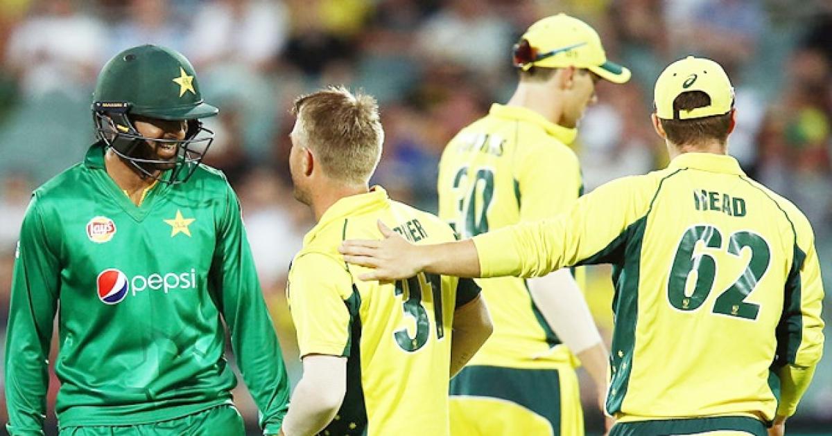 IMAGE: Shoaib Malik of Pakistan speaks to David Warner of Australia during game five of the ODI series at Adelaide Oval on Thursday. Photographs: Morne de Klerk/Getty Images