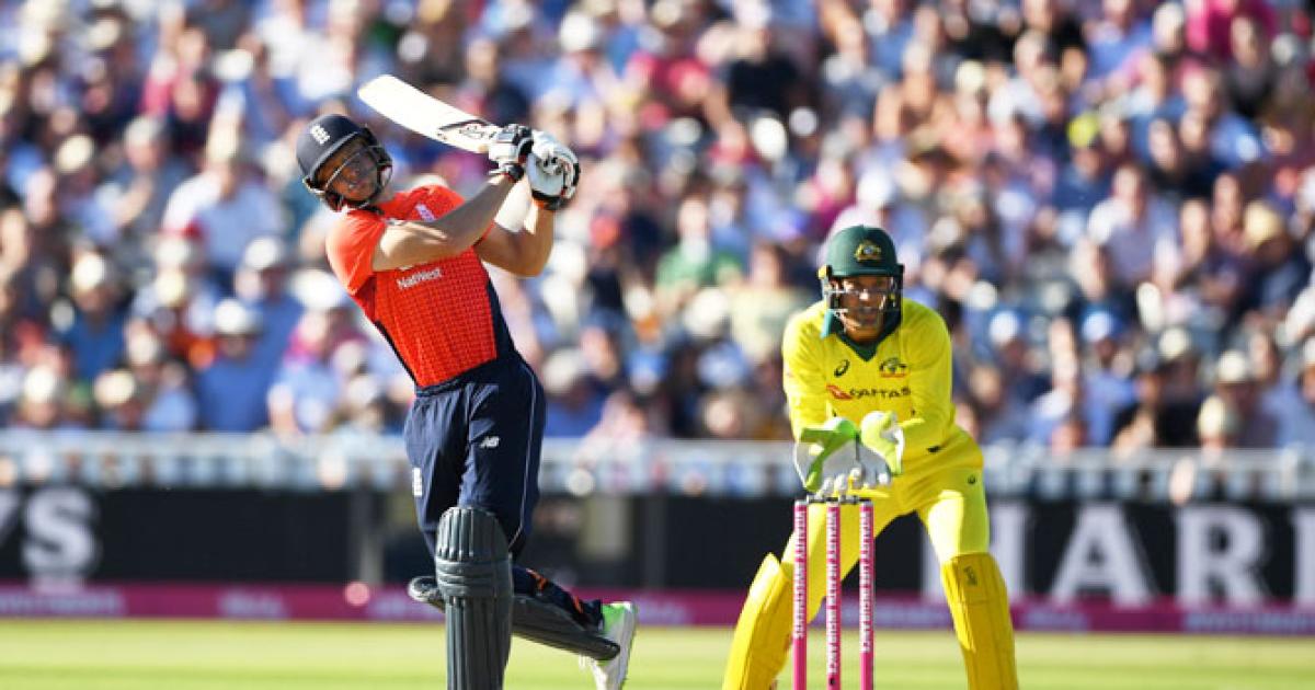 Explosive batting from Jos Buttler, who hit England's fastest-ever T20 fifty, helped Eoin Morgan's side overwhelm Australia by 28 runs at Edgbaston, the tourists' ninth successive loss in all forms of cricket.