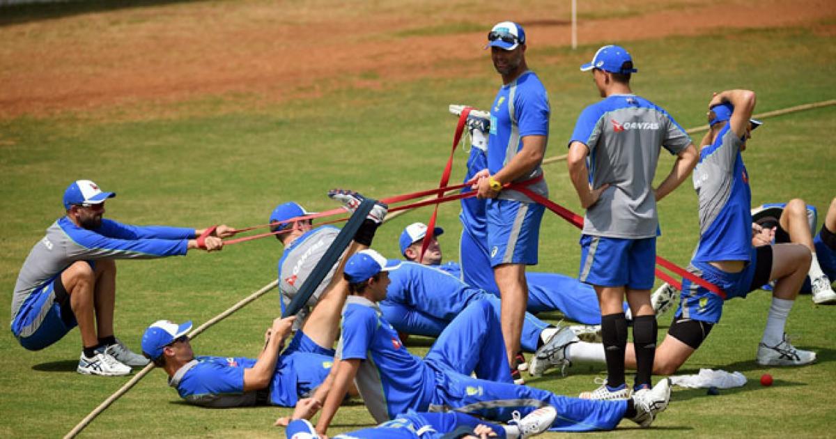 IMAGE: The Australian players in the nets on Wednesday. Photograph: PTI