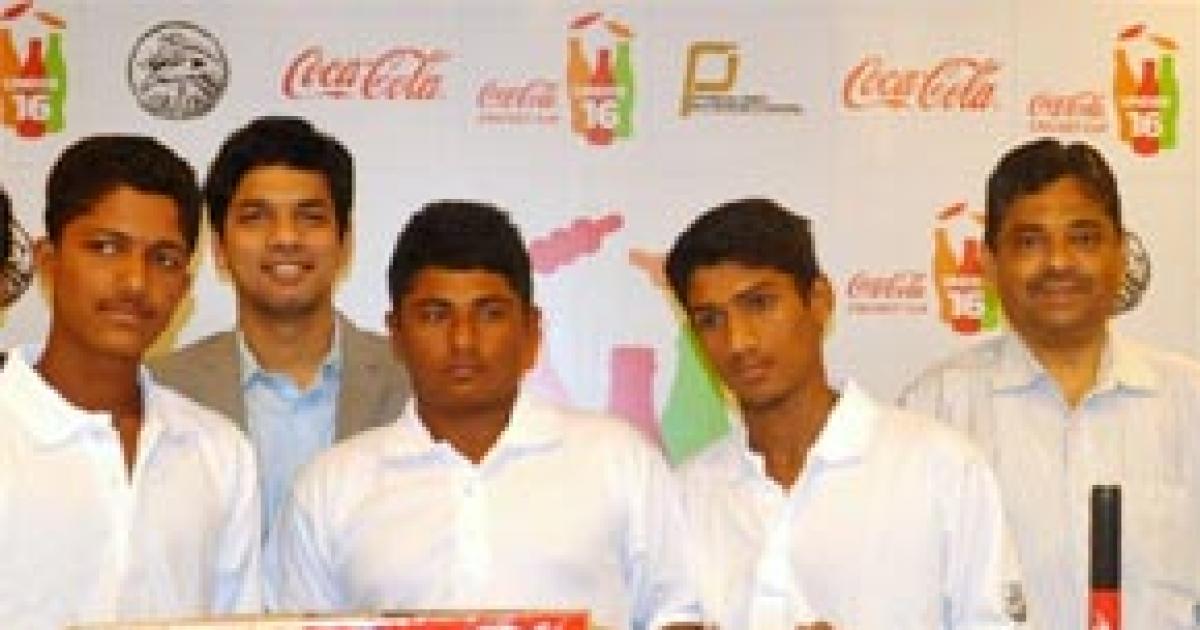 Image (left to right): Arman Jaffer, Sameer Pathak, Senior Manager (Coca-Cola), Sarfaraz Khan, Usama Parkar and Ratnakar Shetty