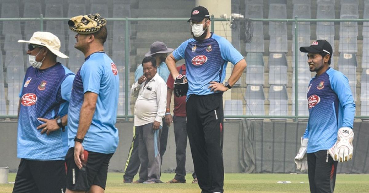 As concerns over pollution in the national capital continues to grow, Bangladesh's players were seen training wearing marks at the Arun Jaitley Stadium on Friday.