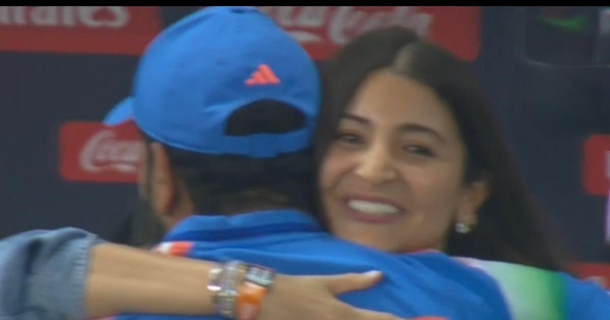 Anushka Sharma, Virat Kohli's wife, was seen standing in the background hoping to catch Rohit's attention. She called out to him and gave him a hug, congratulating him on the win.