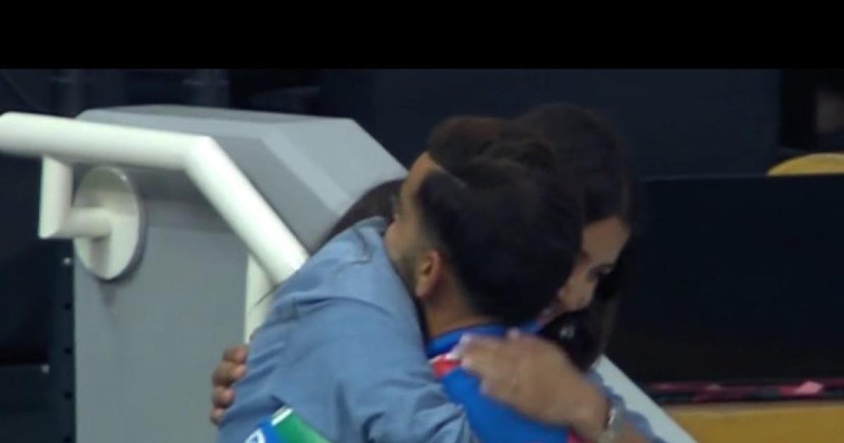 After India's Champions Trophy victory over New Zealand on Sunday, March 9, broadcasters showed Kohli going straight towards Anushka, who was descending a flight of stairs near the stands, and they shared a warm hug.