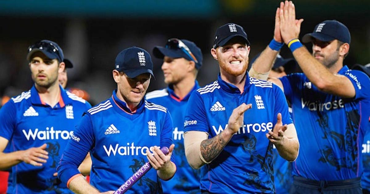 IMAGE: England captain Eoin Morgan and Ben Stokes celebrate after the third One Day International against Pakistan at Trent Bridge. Photograph: Stu Forster/Getty Images