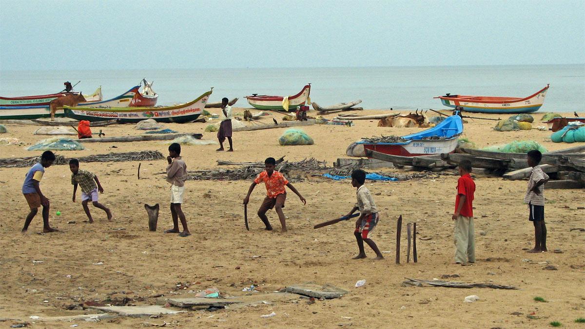 No bat, no wickets and just a plastic ball but a game can still happen on golden sands where surf meets the sport, even as the tide is rising. Nothing can match their barefoot joy.