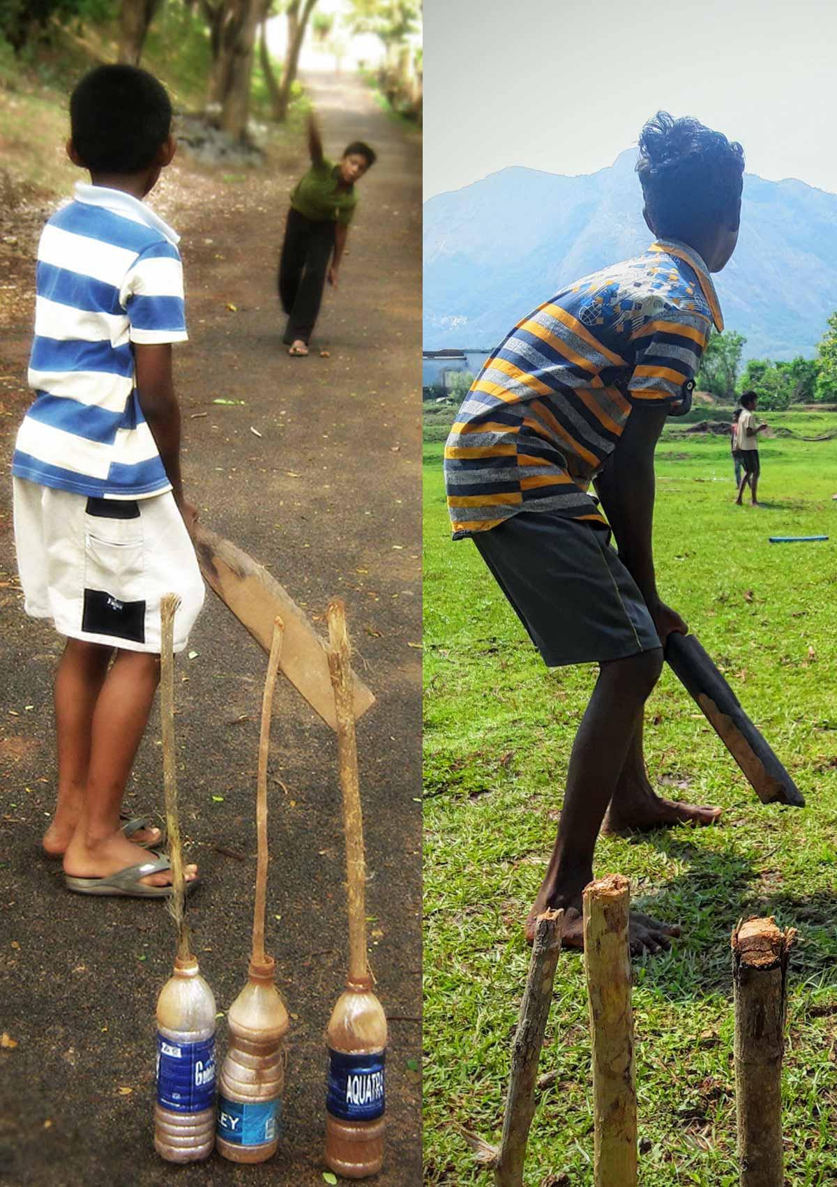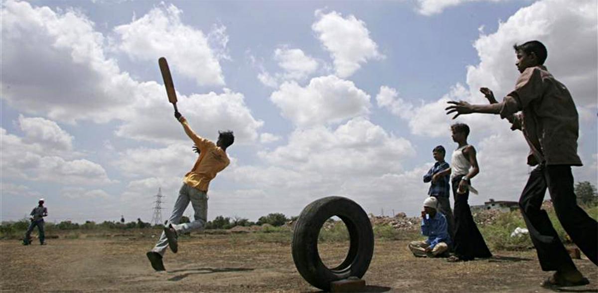 Youngsters turn everyday objects into wickets. Have a tyre and you got a game of cricket.