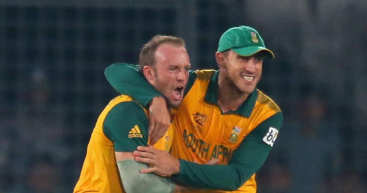 Image: AB de Villiers of South Africa is congratulated by Faf du Plessis